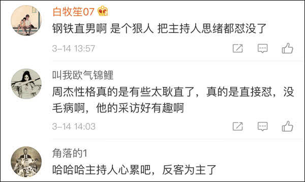 “怼”得主持人几乎哑口无言,周杰枪口一转,又开始“炮轰”部分网友。