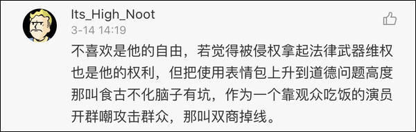 但也有许多人认为周杰作为一名演员,享受娱乐圈所带来的光环,就应该接受与消化随之而来所要付出的代价。将网友的娱乐行为拔高到道德层面,过于上纲上线,“钢铁直男言论”令听者不适,显得情商低下,不通人情世故。