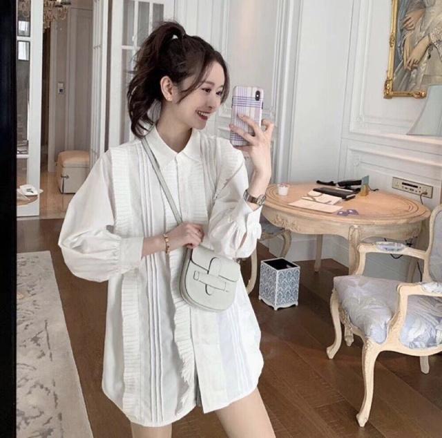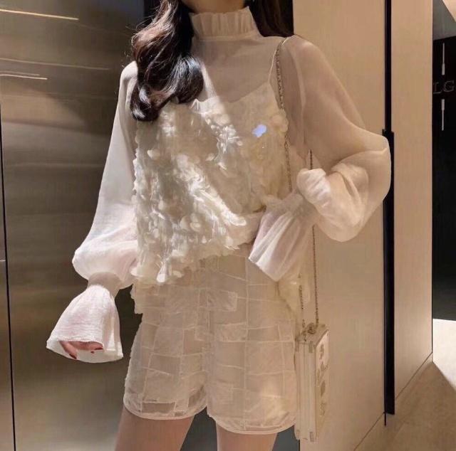 衬衫除了简简单单的款式之外,我们还可以选择这种带一些复古风的白色衬衫?这种复古风衬衫自带一定的时尚感,还会非常的有个性。尤其是这种木耳边波浪纹的设计非常的好看,搭配简简单单的短裤就可以穿出气质感。